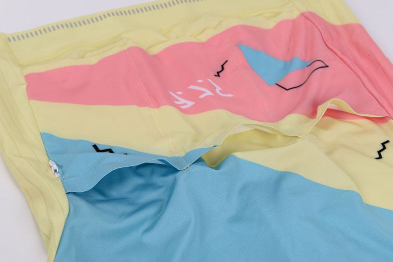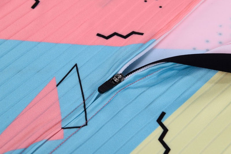 Specially designed to follow the contours of the female body. Perfect fit thanks to the elastic mid-weight textured StripeSpandex and premium Italy MITI Asteria. Features special 'stripe' fabric on the sleeves. Placing of the various fabric textures on the body is particularly fast for positions on the bike. There are three main pockets, including one with a headphone port. Reflective elastic gripper on waist helps keep it in place and prevent wind blowing beneath.