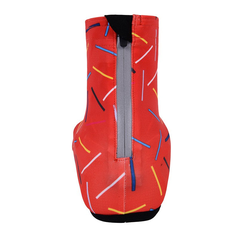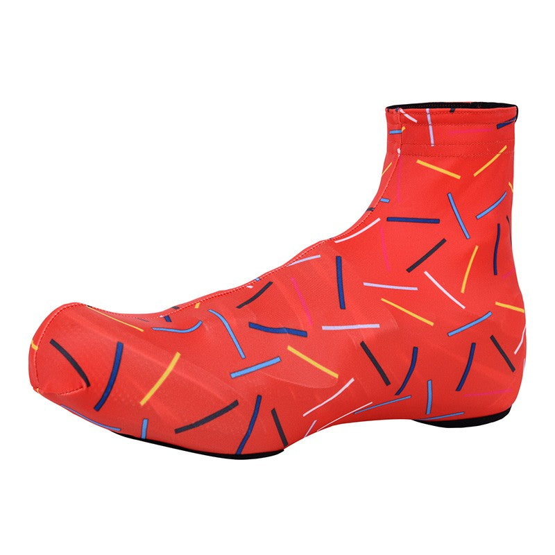 Lightweight breathable synthetic fiber overshoes that protect the shoes from dust and insects. The sole of the overshoe has a ribbed opening for the heel and cleat of a road shoe.