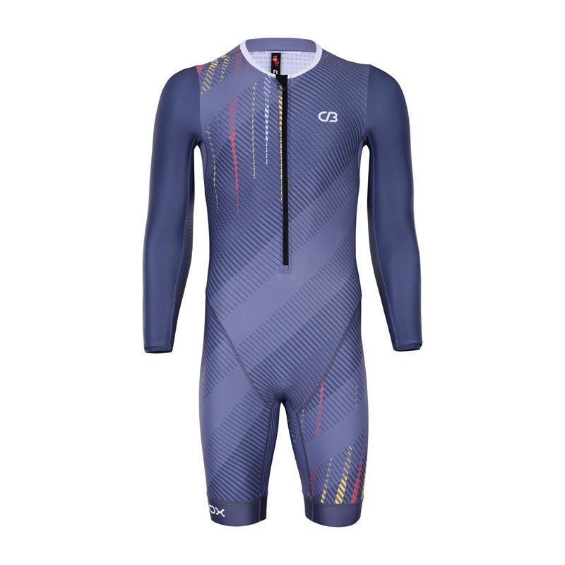 The RACE long sleeve custom tri suit is the one piece that could make all the difference in your performance on race day. Our breathable and compressive raw cut fabrics dry quickly after your swim, are aerodynamic on the bike, and help regulate temperature on the run so you can finish strong.